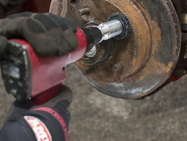 - Removes rust, corrosion and other build-up from wheel stud, drums and tire rim.